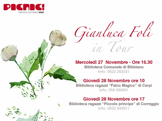 Si è appena concluso il micro tour dell’illustratore romano Gianluca Folì organizzato dall’Associazione PICNIC! in collaborazione con tre biblioteche della provincia di Reggio Emilia e Modena.
