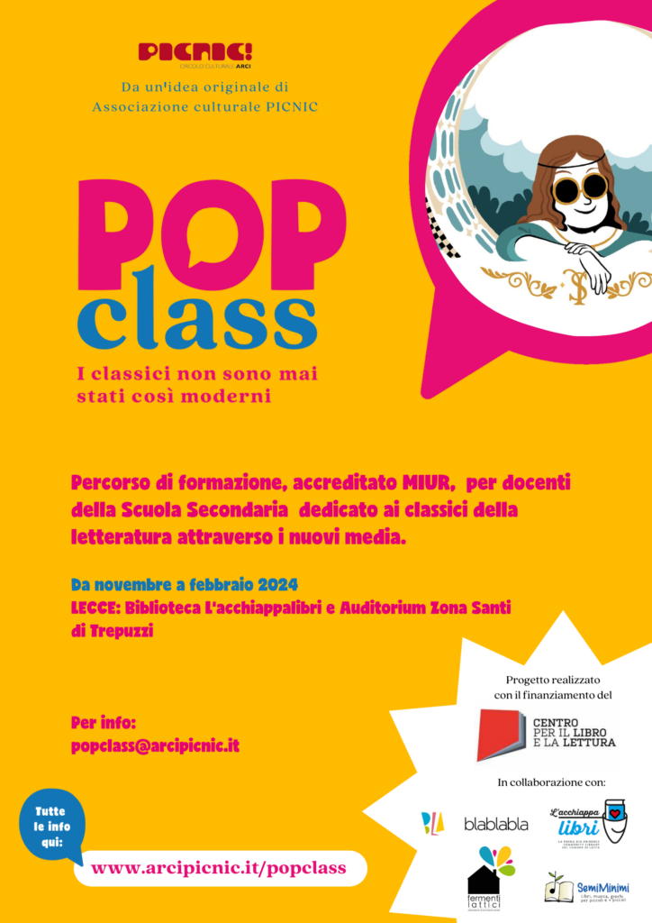 Dopo il suo inizio reggiano, il percorso di formazione POP CLASS. I Classici non sono mai stati così moderni, rivolto ai docenti delle Scuole secondarie e accreditato MIUR, si sposta in Puglia.
